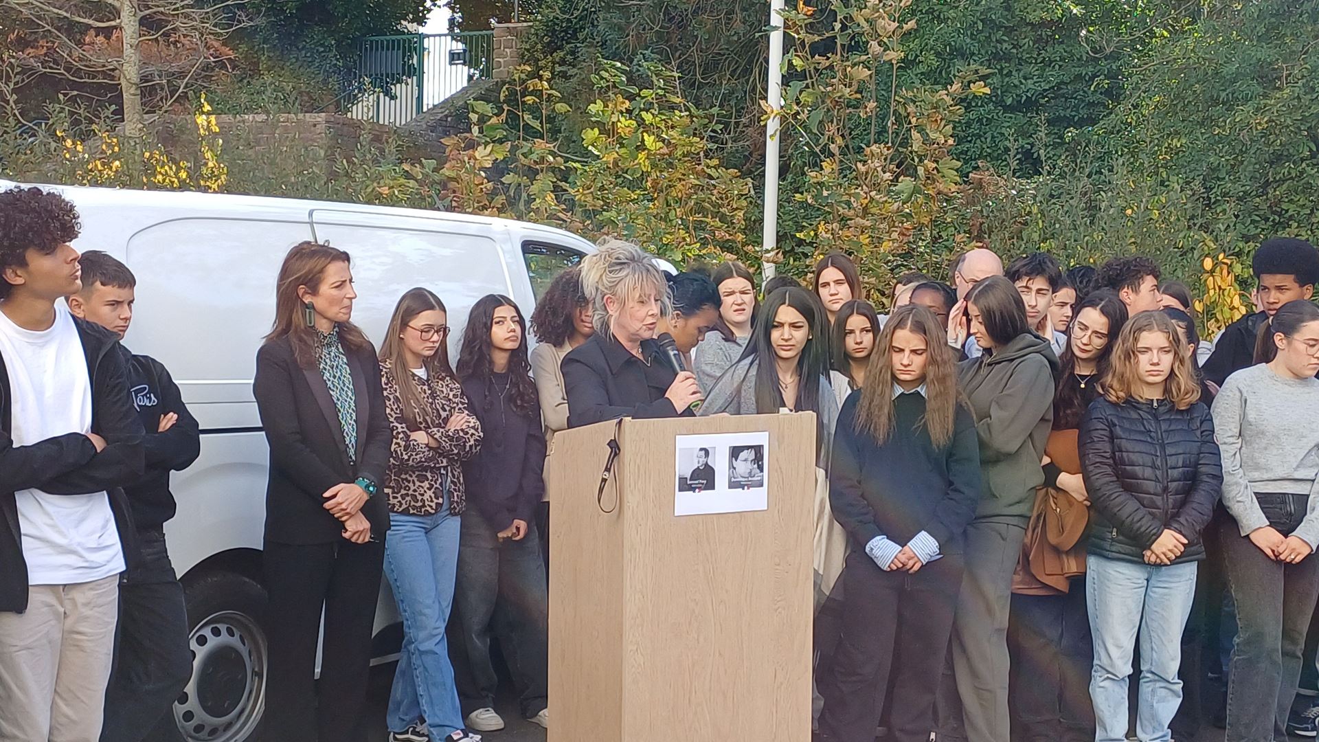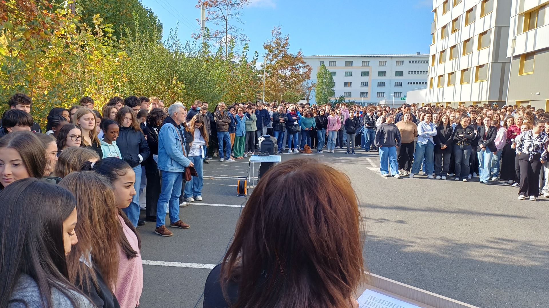Au lycée Jules Lesven, une cérémonie collective d'hommage et de recueillement s'est tenue le mardi 14/10/25, avec sur la cour réunis, l'ensemble des élèves, étudiantes, étudiants, professeurs, agents, personnels de direction venus très nombreux ainsi que le personnel du GRETA Bretagne occidentale.