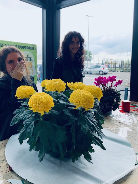 Ils ont fièrement réalisé l'emballage des fleurs de la Toussaint, après avoir reçu une formation dans le magasin.