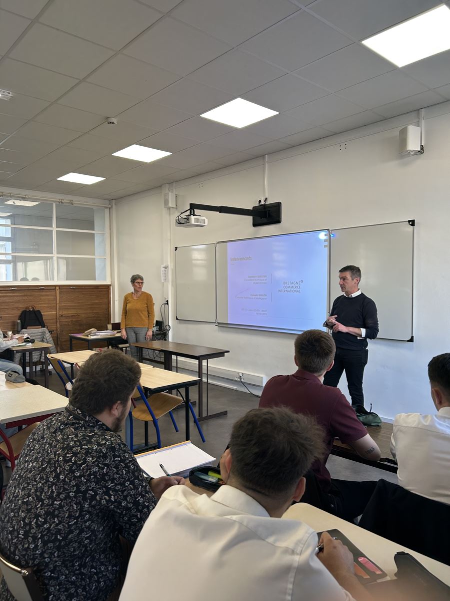 Les étudiants de BTS Commerce International ont eu le plaisir d’accueillir deux représentants de Bretagne Commerce International (BCI), venus présenter le rôle et les missions de cet organisme au service des entreprises bretonnes désireuses de se développer à l’international.