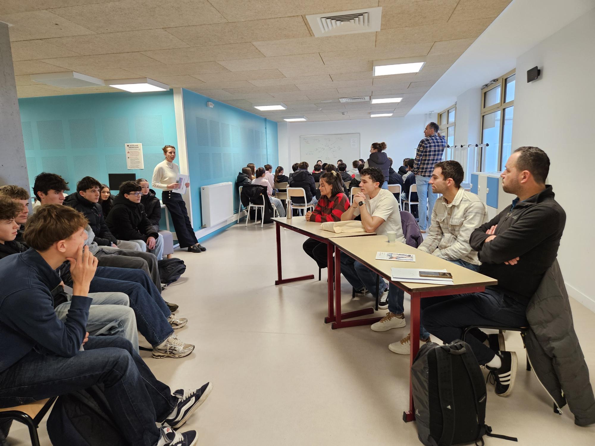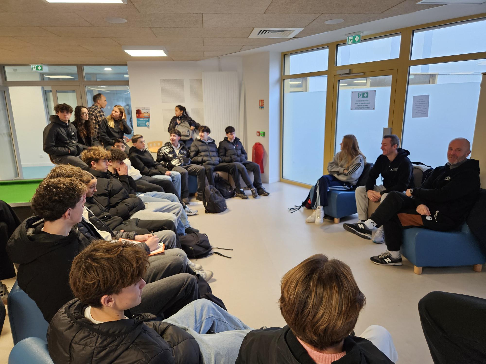 Dans le cadre des Cordées de la Réussite « Sciences et Sport : mon orientation réussie ! », 93 élèves ont participé à un forum des métiers en lien avec le sport et le corps. Ils ont pu échanger avec des professionnels issus de différents secteurs (enseignement ; commercial ; haut niveau ; indépendant ; ETAPS). Ils étaient 13 professionnels présents. Les échanges ont été riches et ont permis aux jeunes de découvrir ou d’approfondir leurs connaissances sur les métiers représentés !